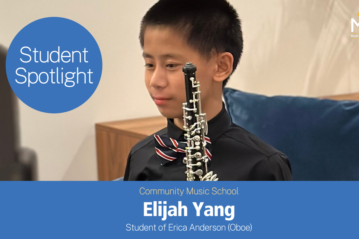 Thirteen-year-old Elijah Yang first discovered his love for music in fifth grade, when he joined the beginning band at school with a group of friends. “Music is fun and makes me happy—I’ve always been curious to learn more about it,” he says. While in the band, his teacher encouraged him to try the oboe. “The moment I heard its sound, I knew it was the right instrument for me.”