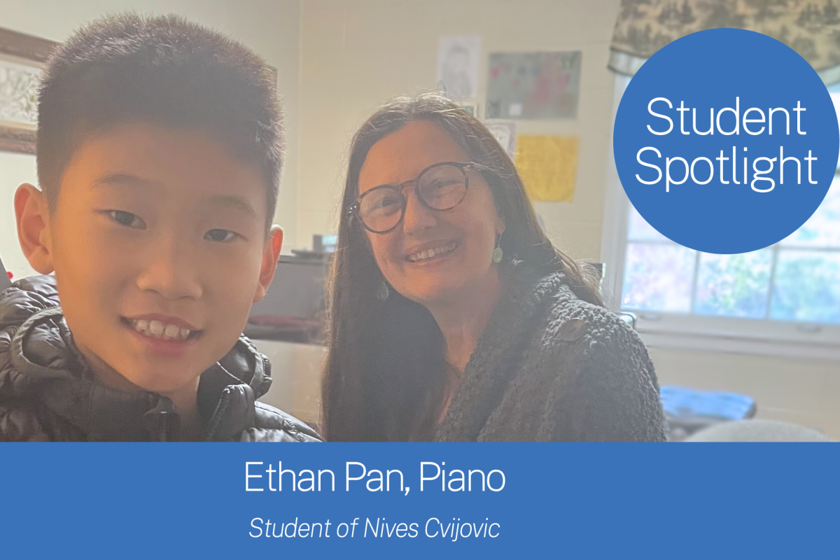 Ethan’s mom, Yilan, decided to enroll Ethan at the Music Institute of Chicago after hearing about its excellent teachers. She has been especially grateful for Ethan’s teacher, Nives Cvijovic. “Ms. Nives is kind and professional. She always encourages Ethan and influences him in positive ways,” Yilan shares.
