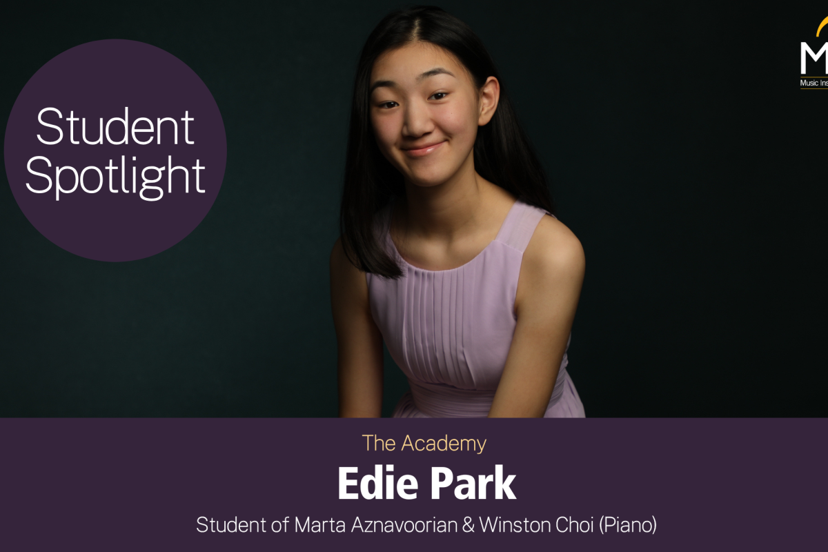 Now 16, Edie has studied piano for ten years. She spent eight of those years in the Music Institute of Chicago’s Community Music School, beginning in the Suzuki program with Dr. Christina Tio and later studying with Winston Choi. This year, she has completed her first year in the Academy, where she is now co-taught by Marta Aznavoorian and Winston Choi.