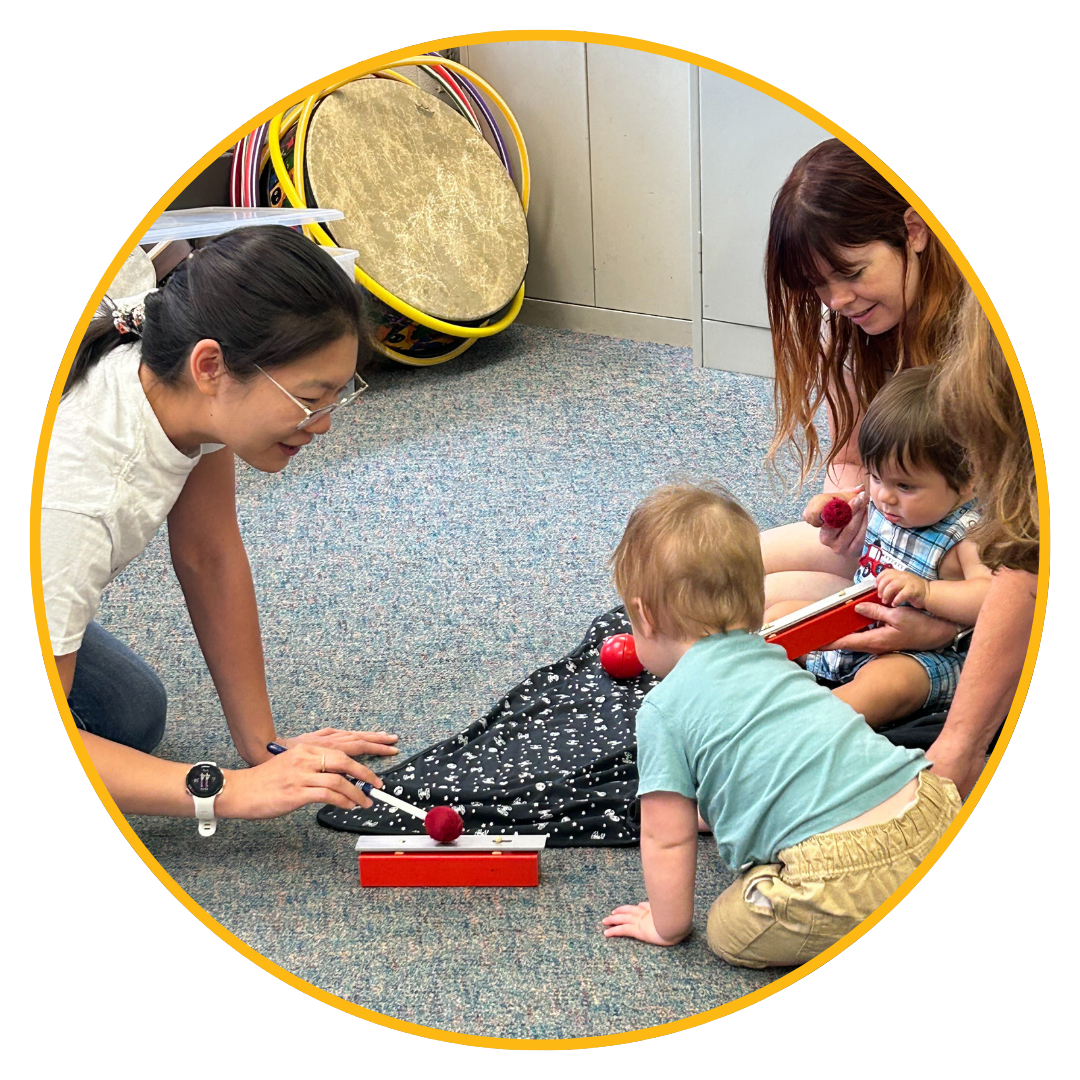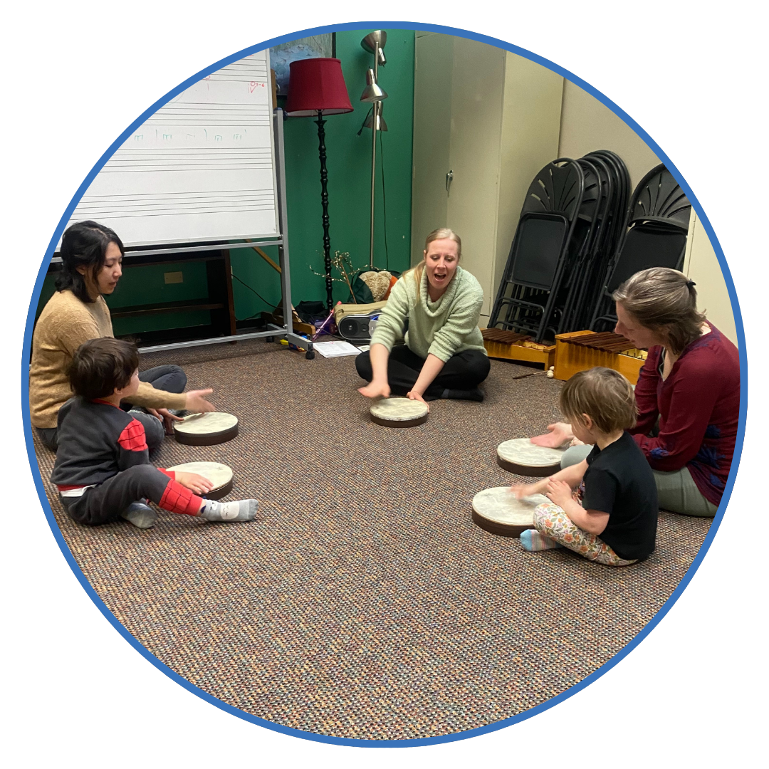 Mixed-age music classes for babies and toddlers allow families with more than one child in this age group to attend music classes together. The classes are filled with a great variety of music and movement activities to meet children’s developmental needs, to hold the children’s interest in the group setting, and to provide a space for families to enjoy making music together. An adult must accompany each child or sibling group.